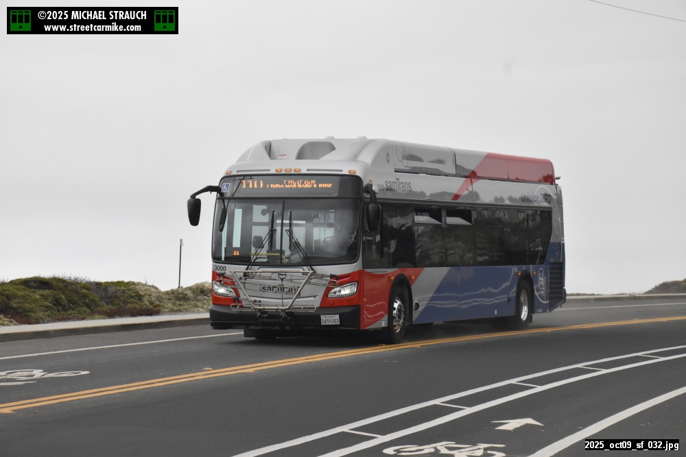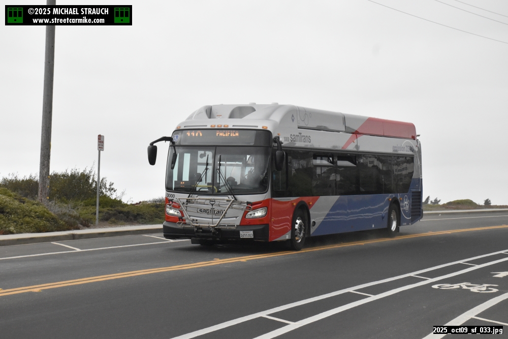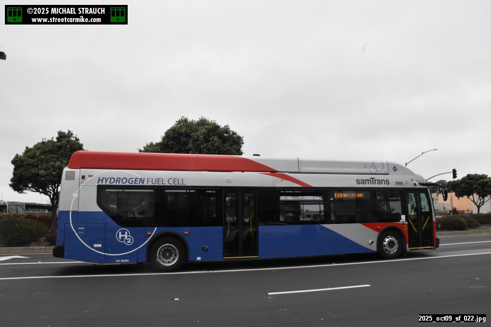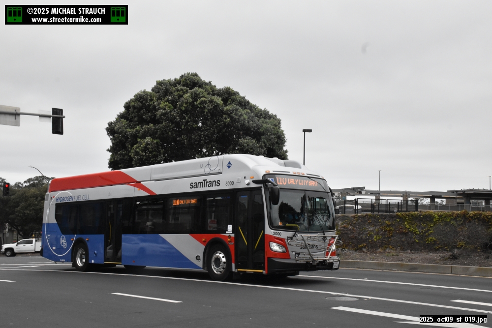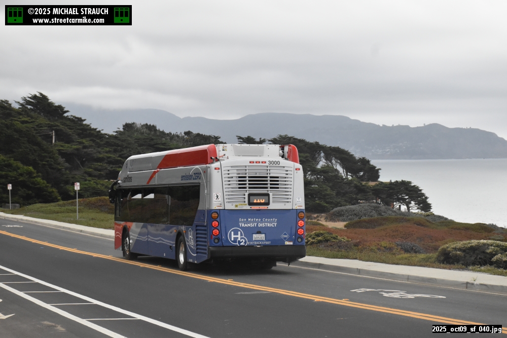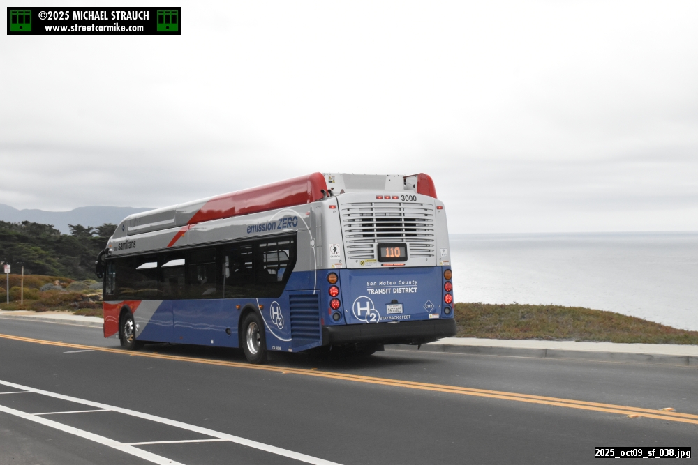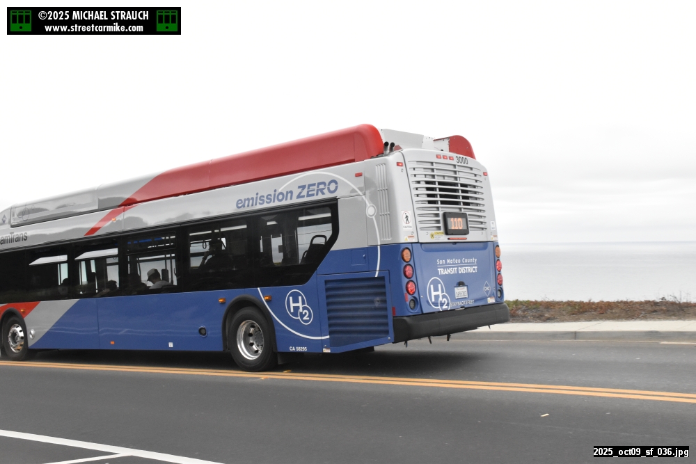 After visiting for another appointment in Redwood City, and the lunch that followed, I drove to Daly City and Pacifica to track SamTrans hydrogen electric bus 3000 on the 110 route.
