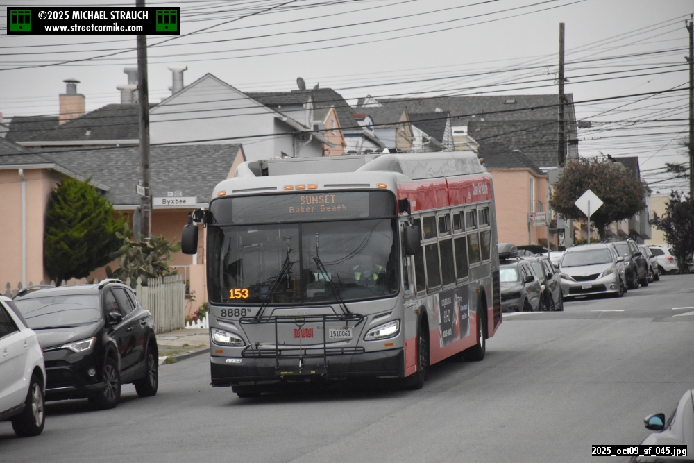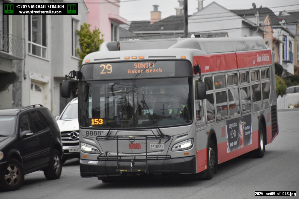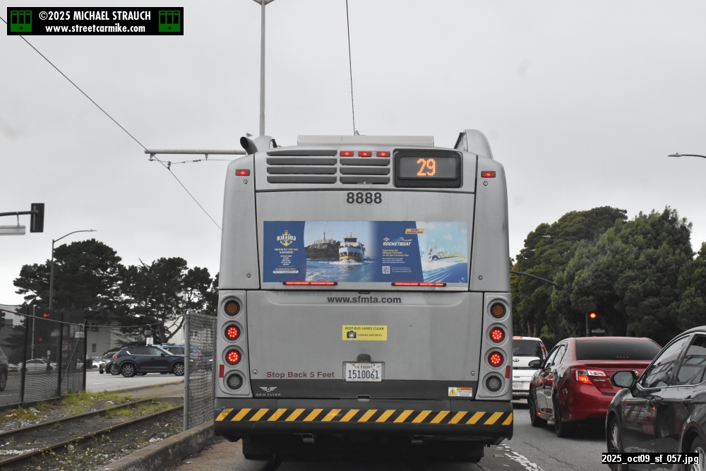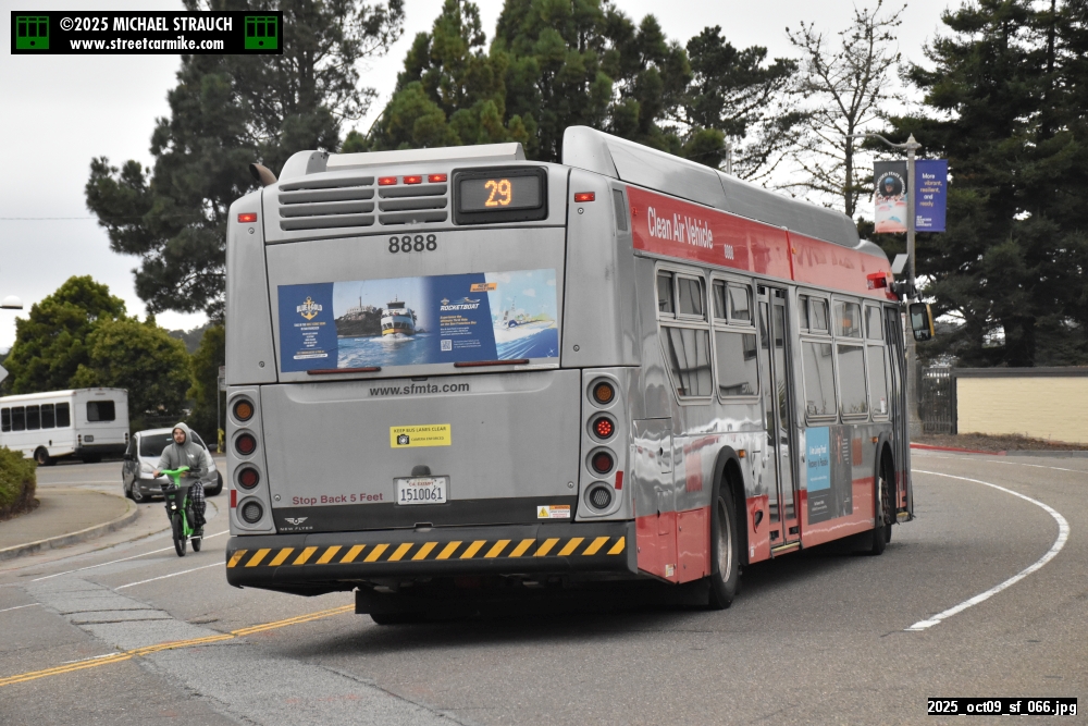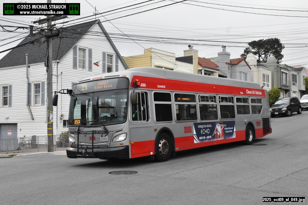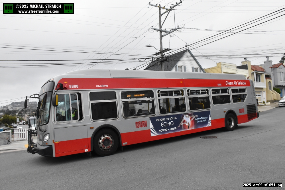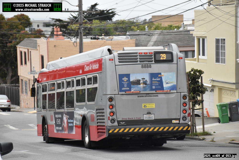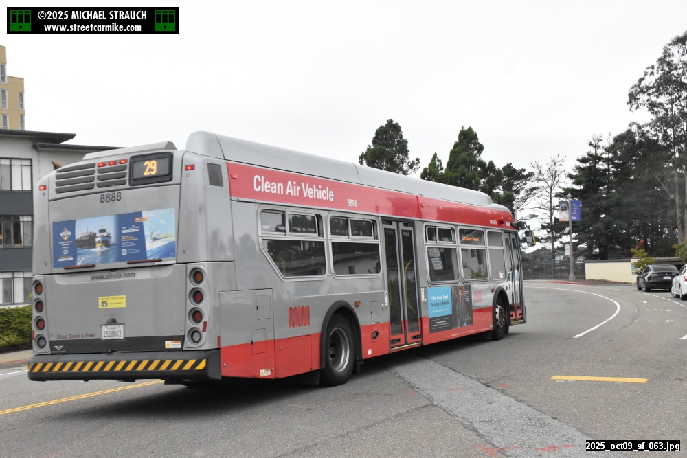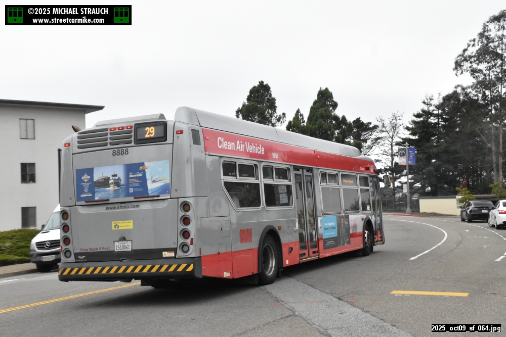 Stopped by the Ocean View Laundromat on 19th Ave. in San Francisco. As the dryer started, I drove to the 29 Sunset line on Garfield St. and then on Winston Ave. to get more shots of New Flyer 8888.