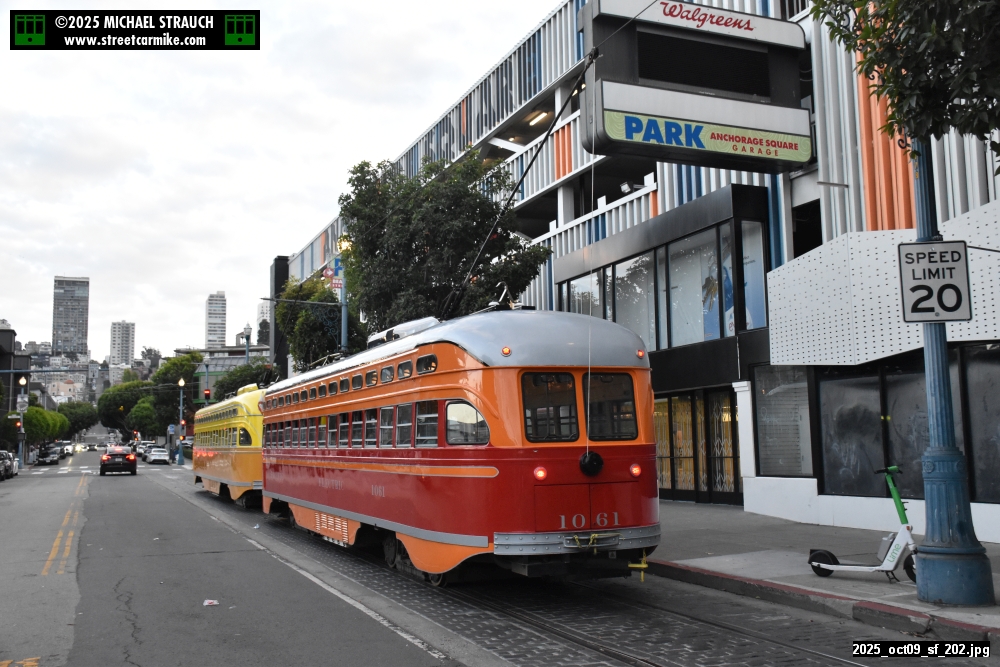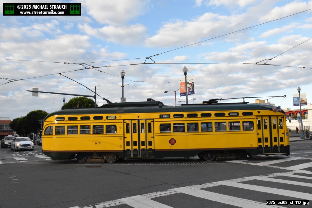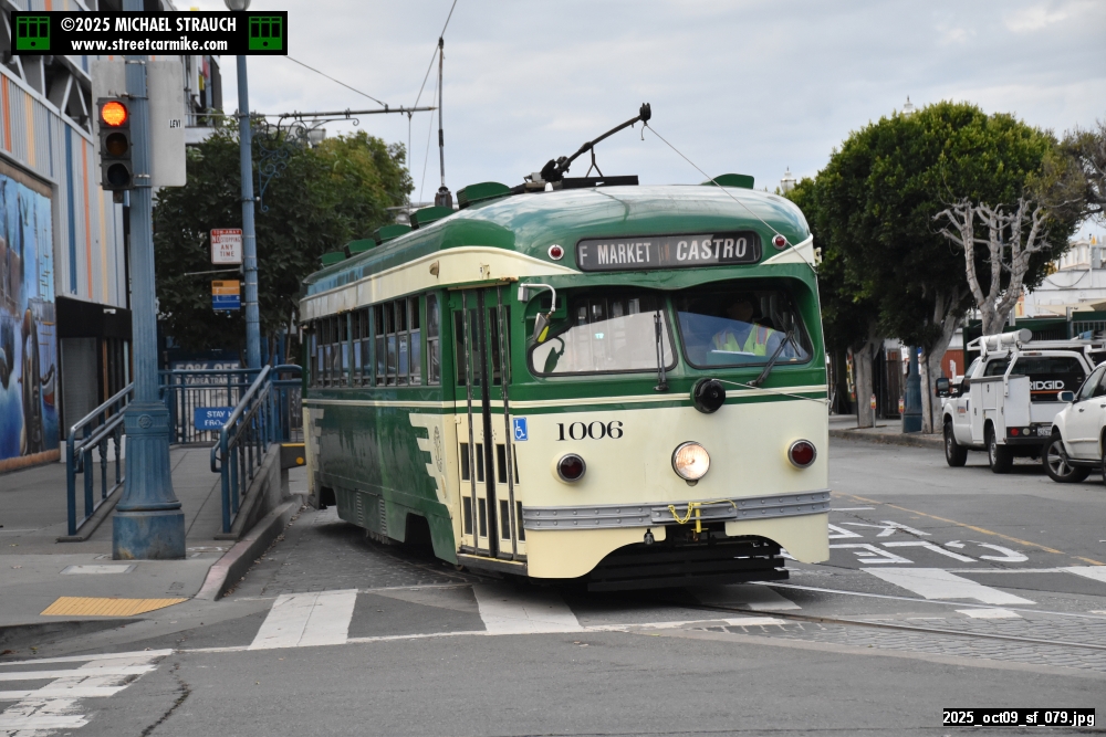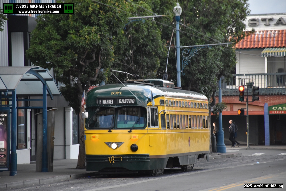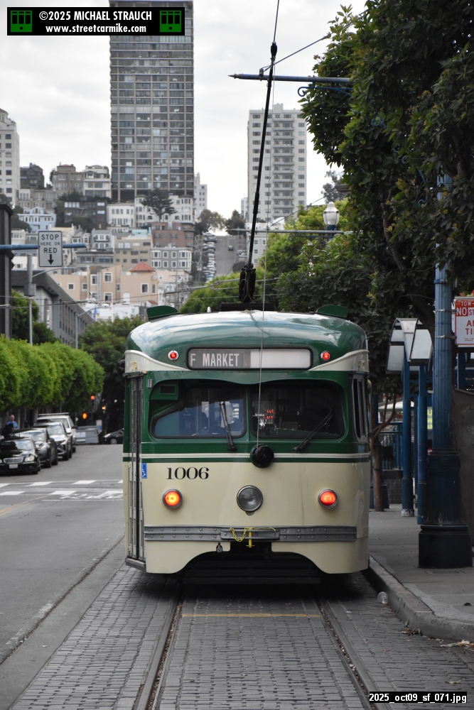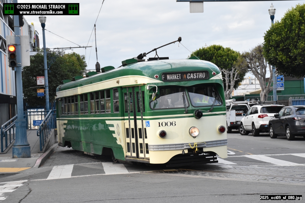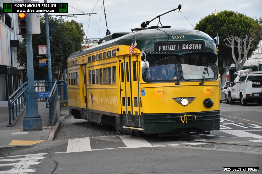 Went up to Jones and Beach Sts. for specific PCC cars on the Market & Wharves line: 1006, 1071, and 1061. Of course, others came and went in front of my camera.