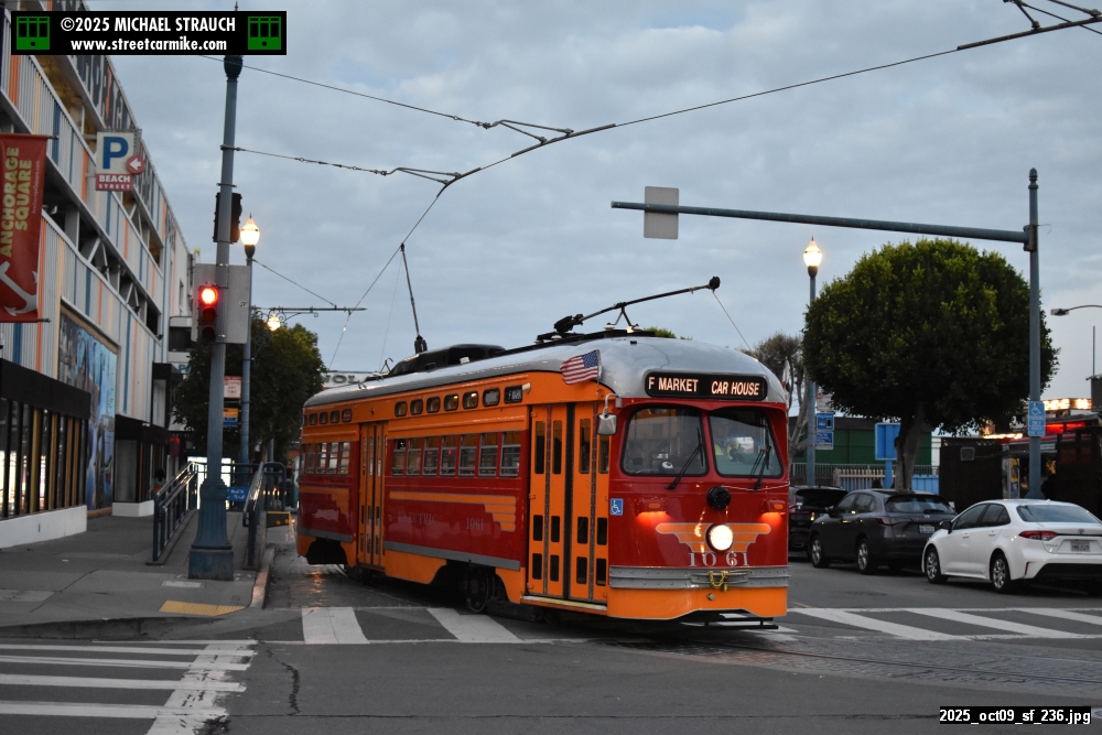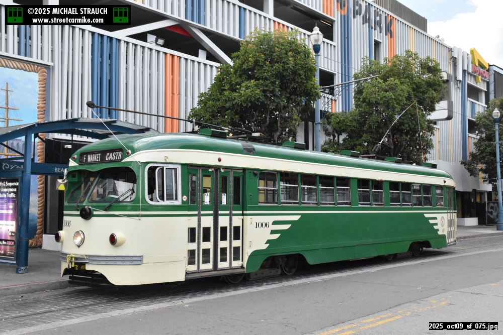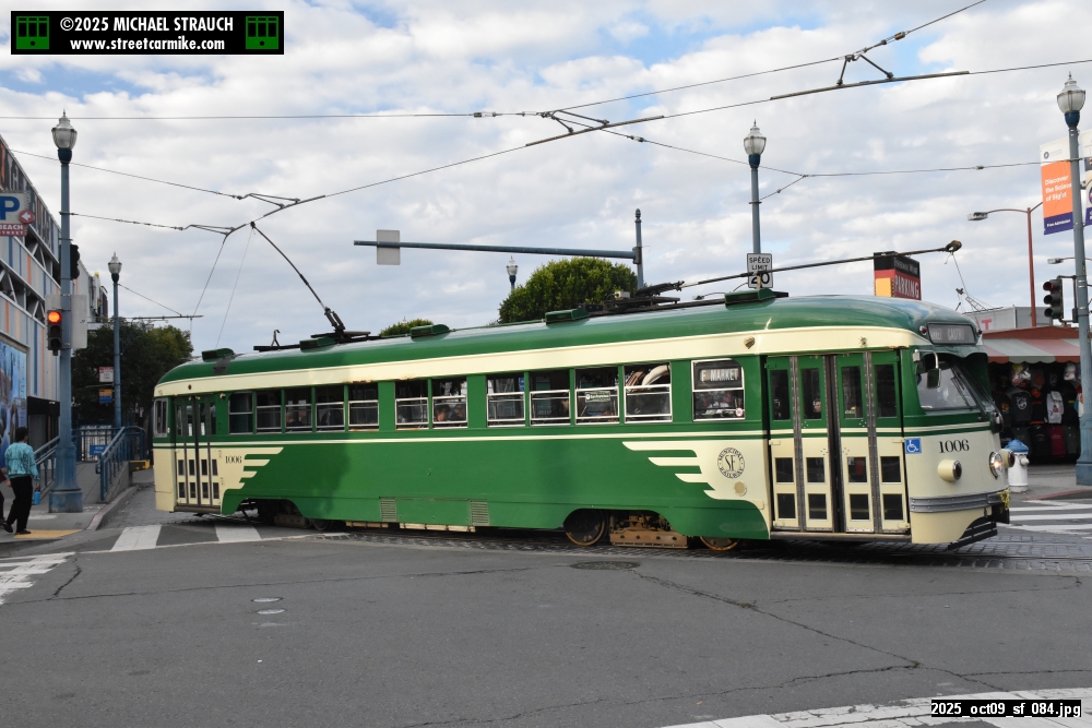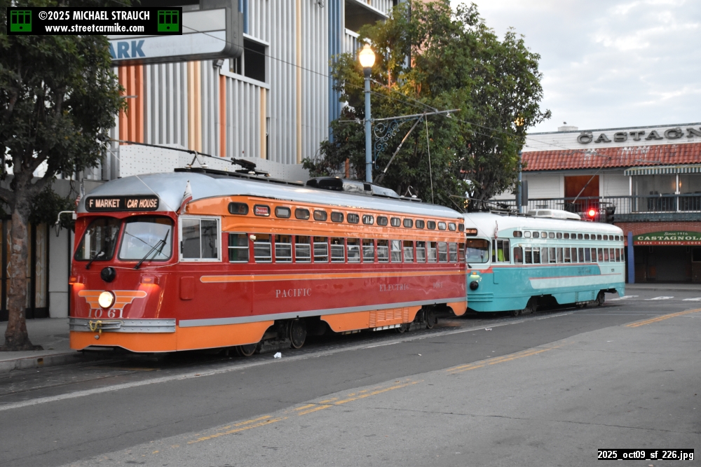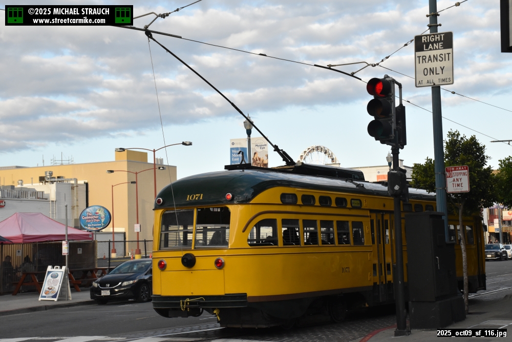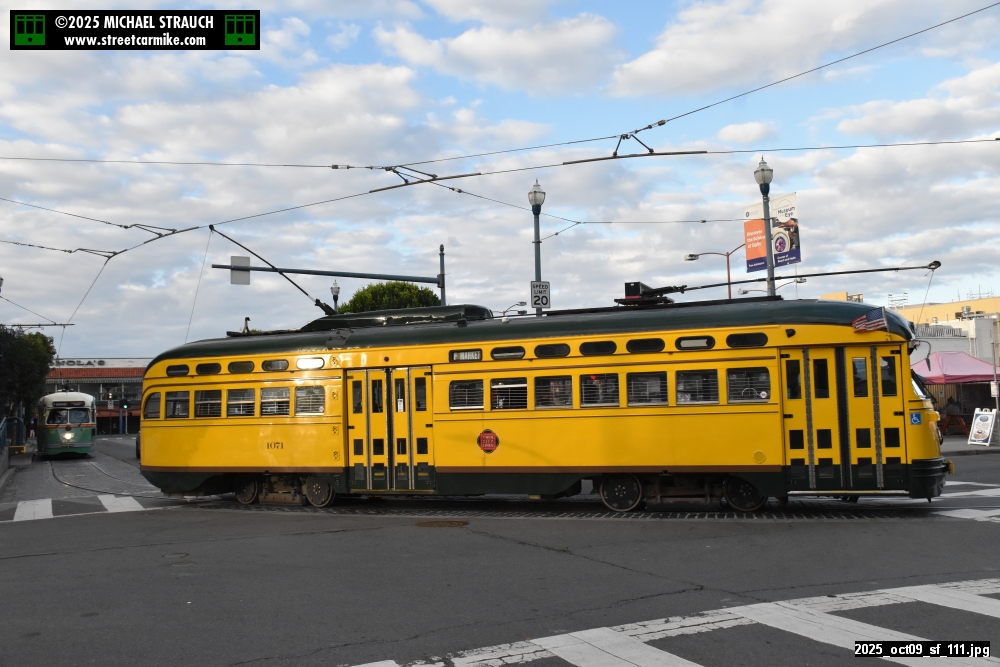 Went up to Jones and Beach Sts. for specific PCC cars on the Market & Wharves line: 1006, 1071, and 1061. Of course, others came and went in front of my camera.