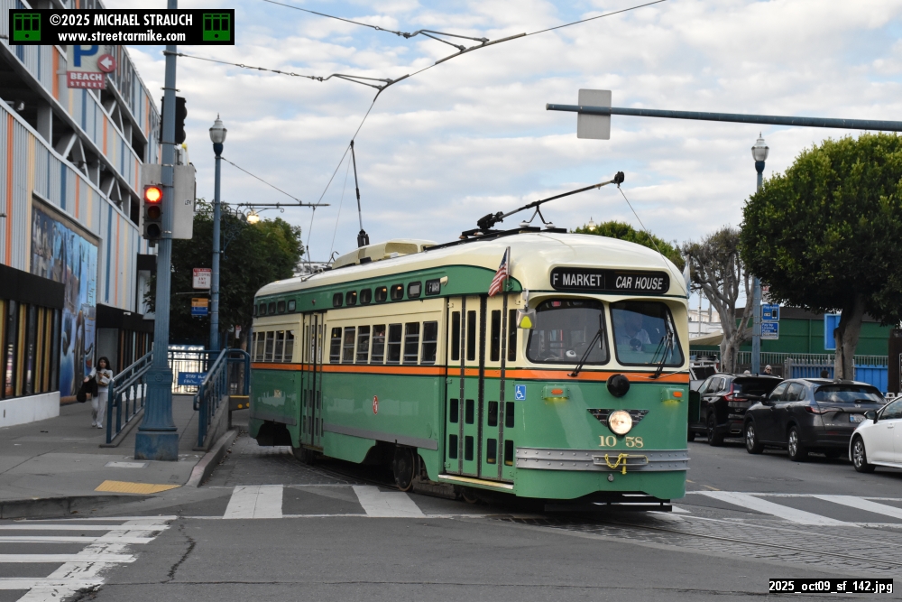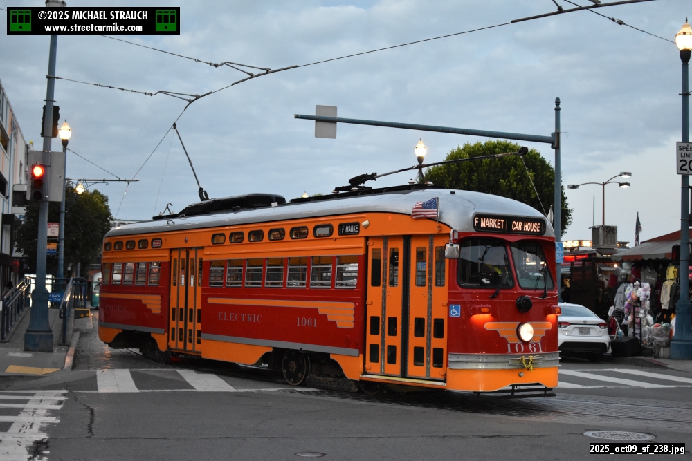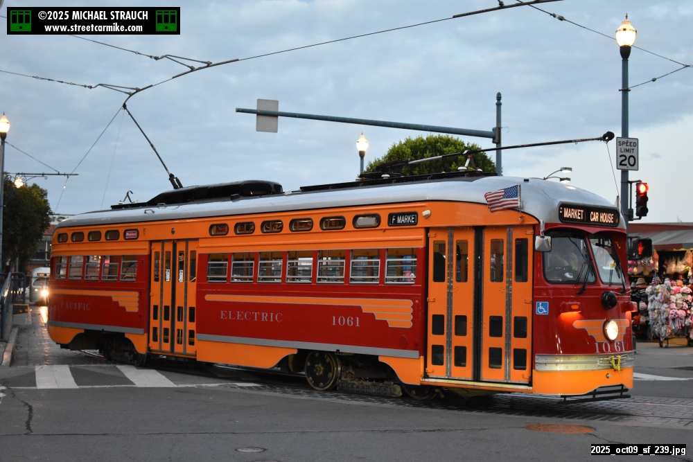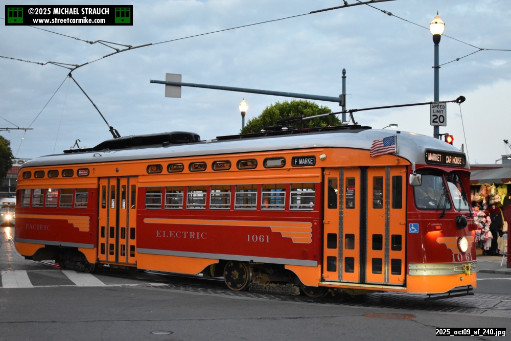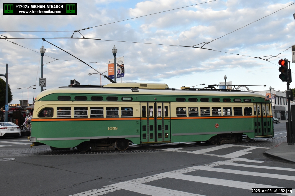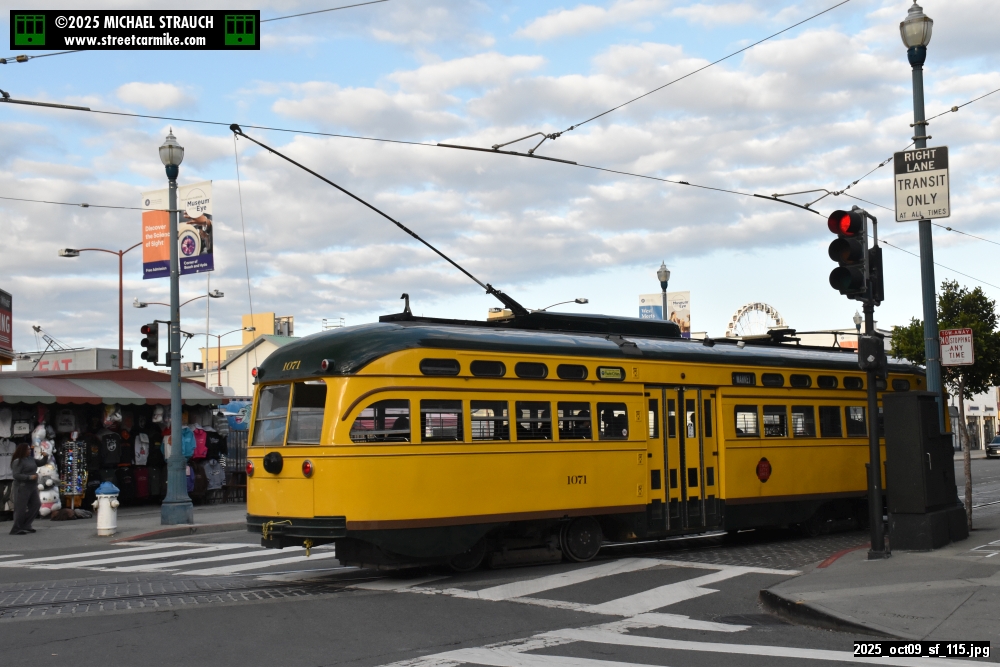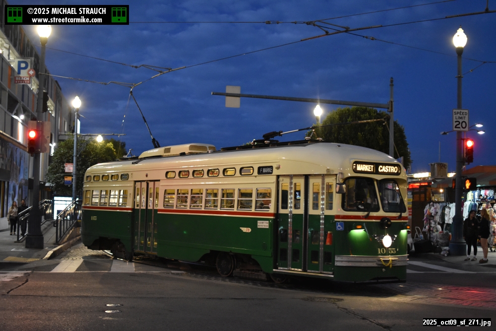 Went up to Jones and Beach Sts. for specific PCC cars on the Market & Wharves line: 1006, 1071, and 1061. Of course, others came and went in front of my camera.