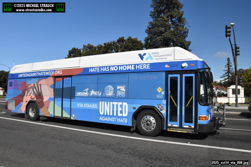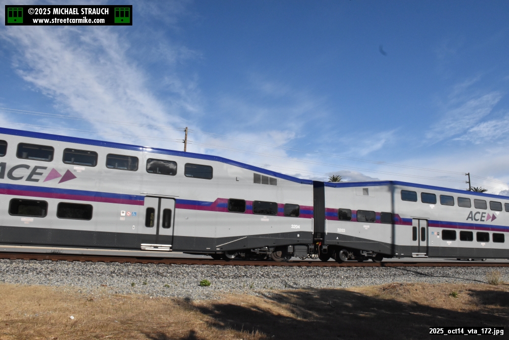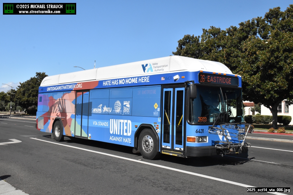 A trip around Santa Clara County, specifically Campbell, San Jose, and Santa Clara. I followed VTA coaches Gillig 6406 (Pride) on the 60 and 6431 (VTA Stands United Against Hate) on the 26. Also got two Capitol Corridor trains and one ACE. Lastly, I found out Gillig 4103 received the newest VTA logo with some two tone blue stripes. Got the shots on the 59 line on Mission College Blvd. Other VTA buses are also pictured, and some of them have a new 30th anniversary logo.