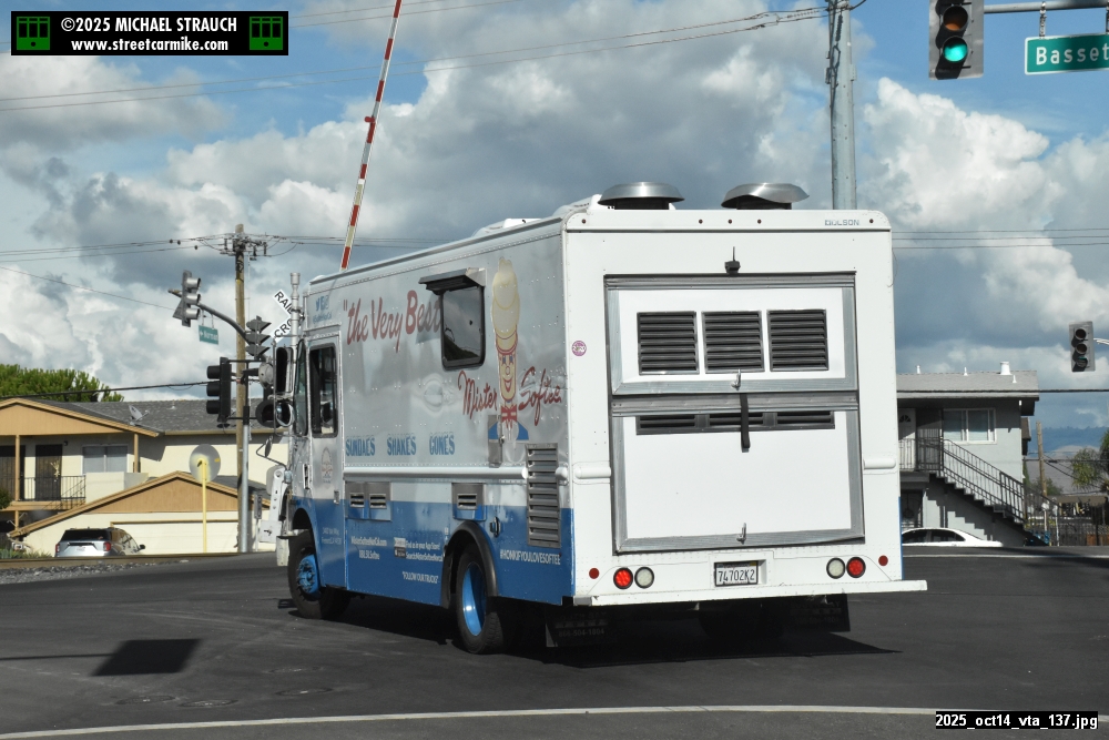 Picture 066 is a cloud formation that reminds me of the dog token in the game Monopoly. A Mister Softee ice cream truck was roaming the neighborhood where I photographed the second Capitol Corridor train, so I tracked it on their app and got a few quick shots.