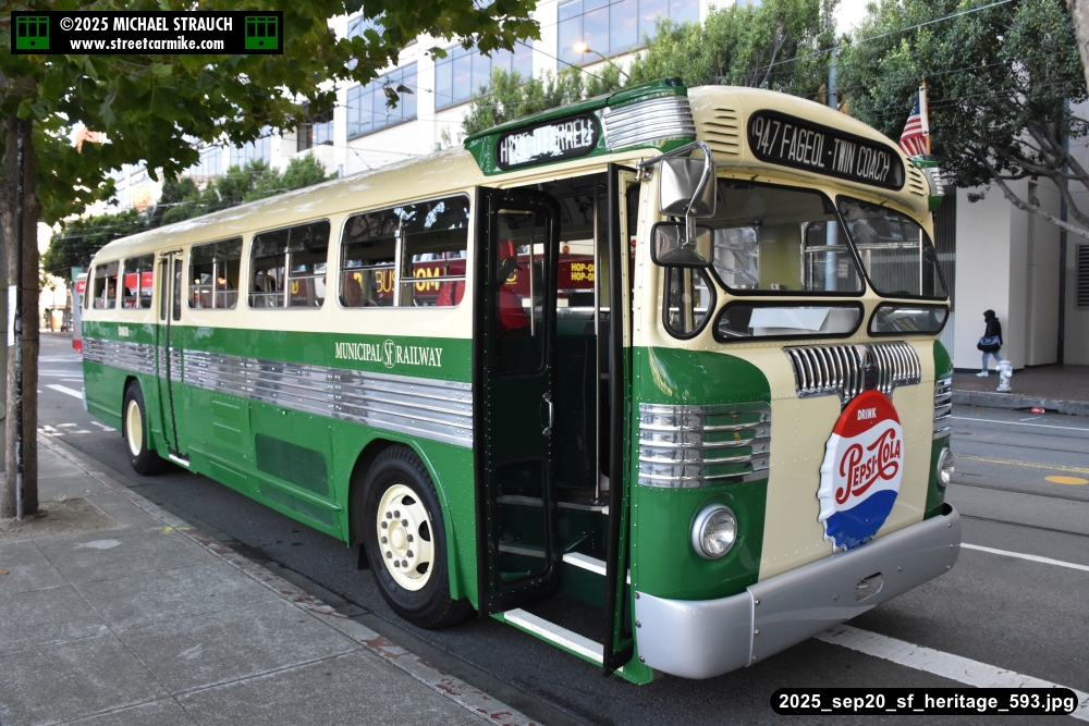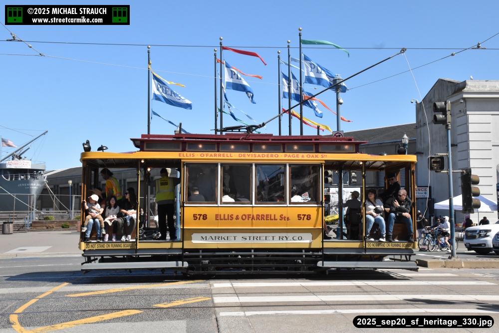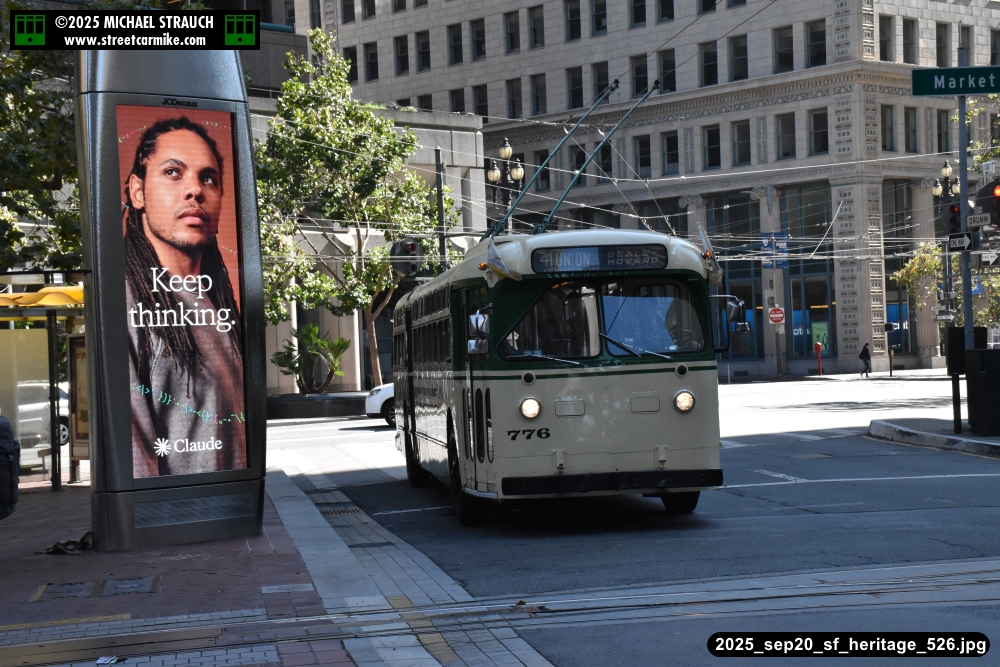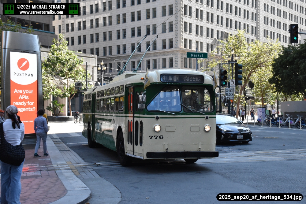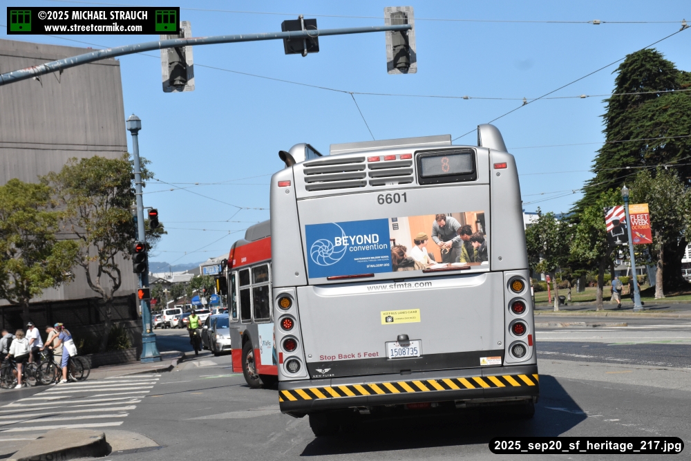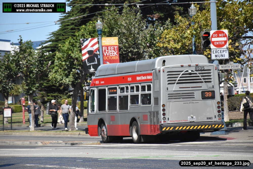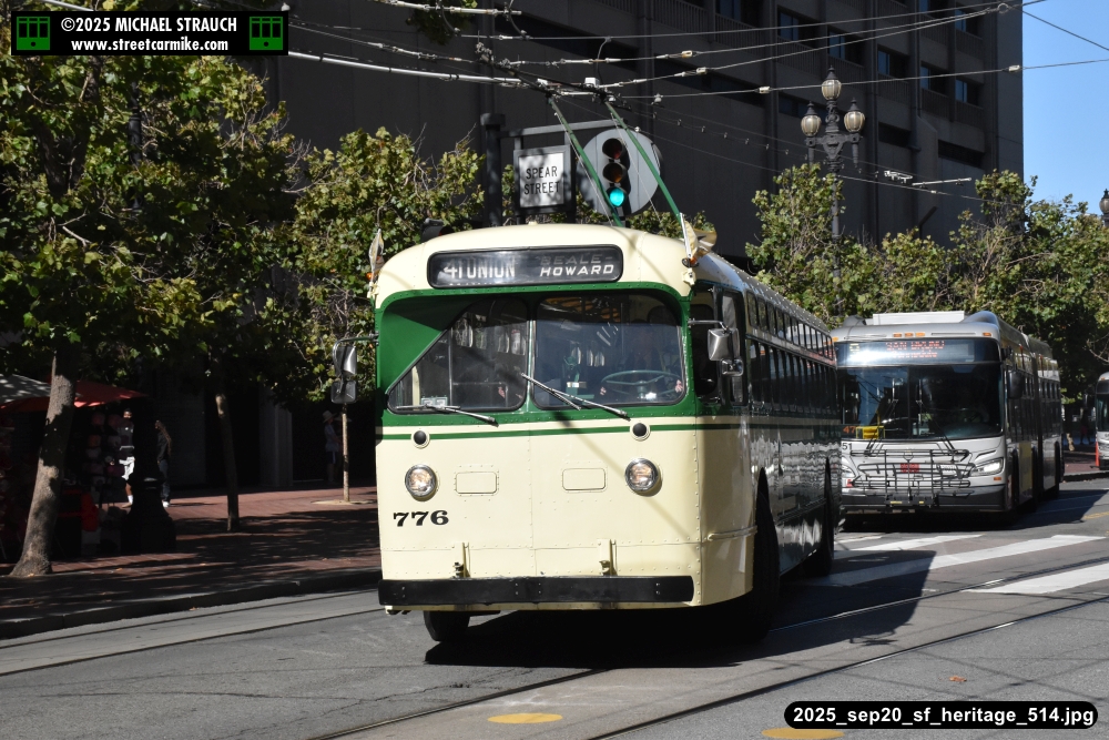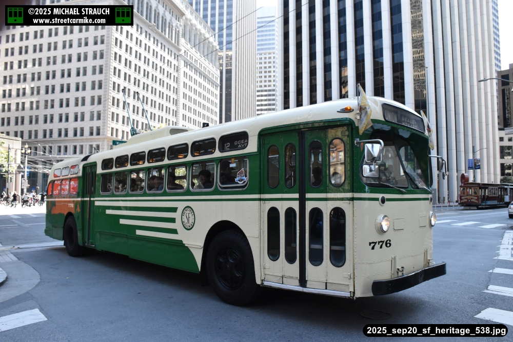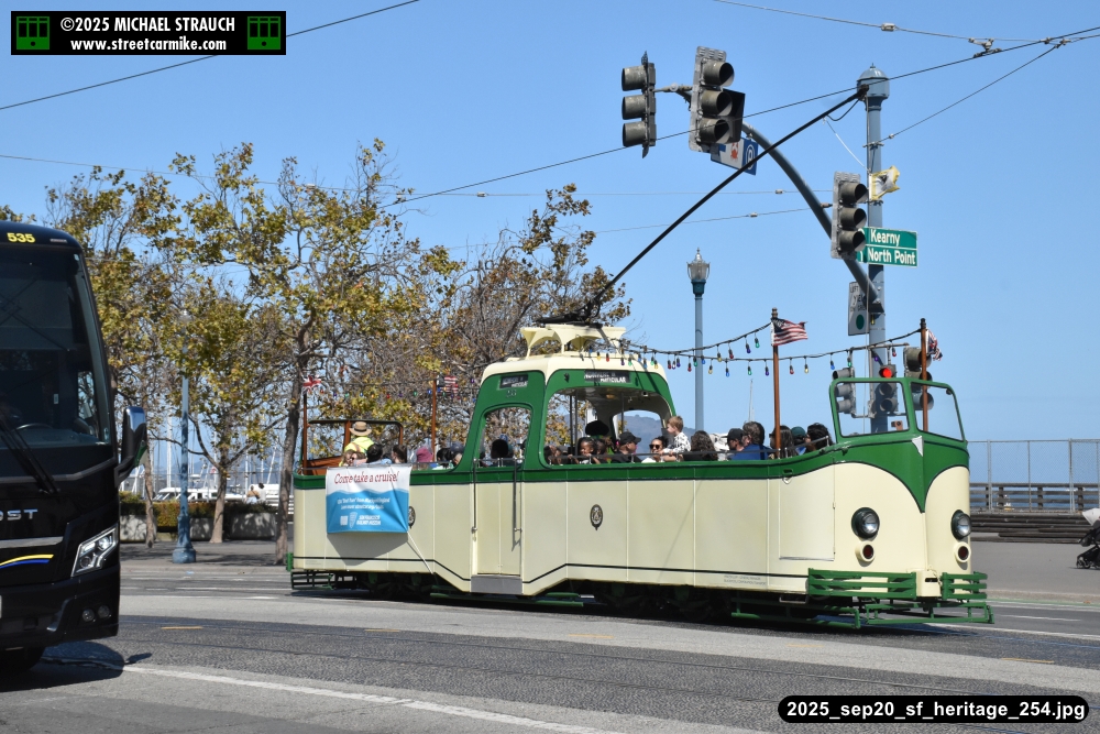 to Pier 39 and back. On the trolley coach side, Marmon 776 and Flyer 5300 were looping out Columbus Ave.