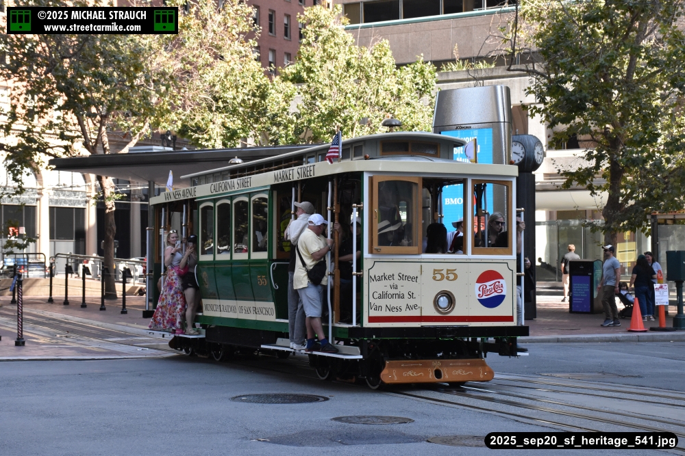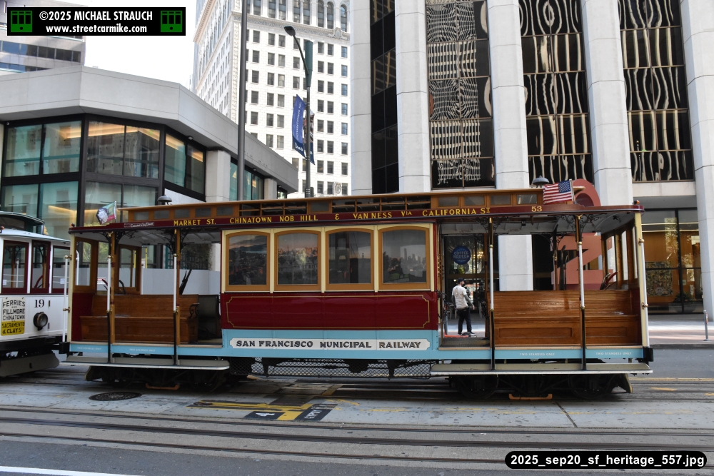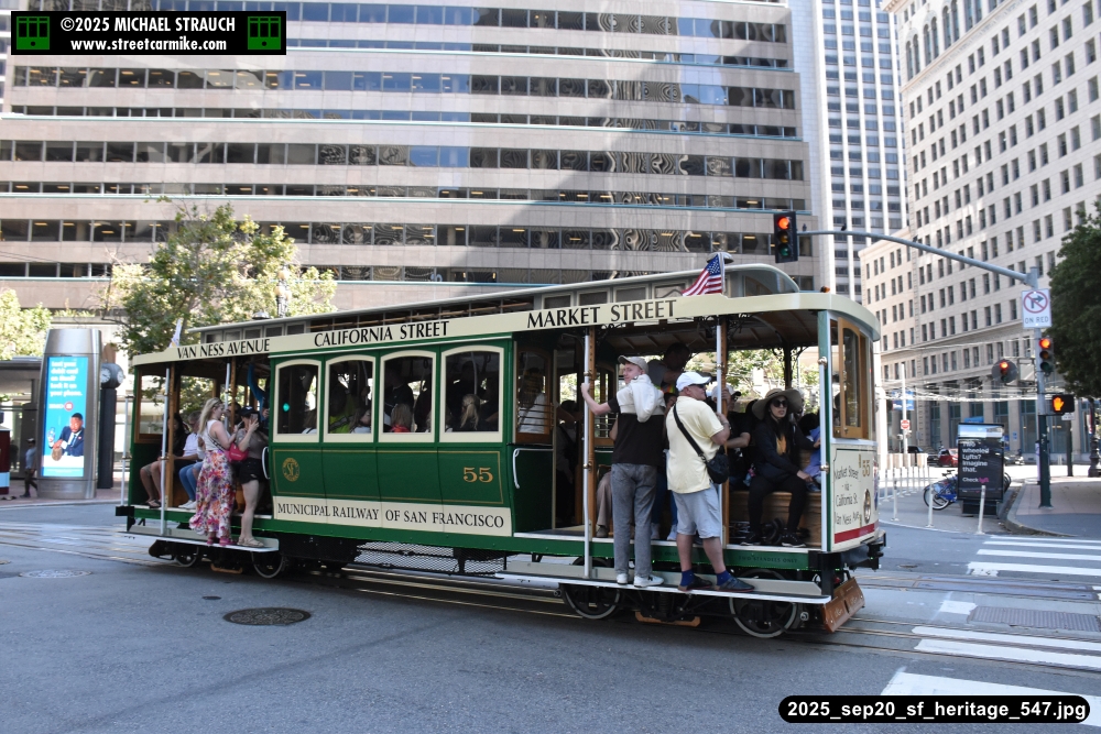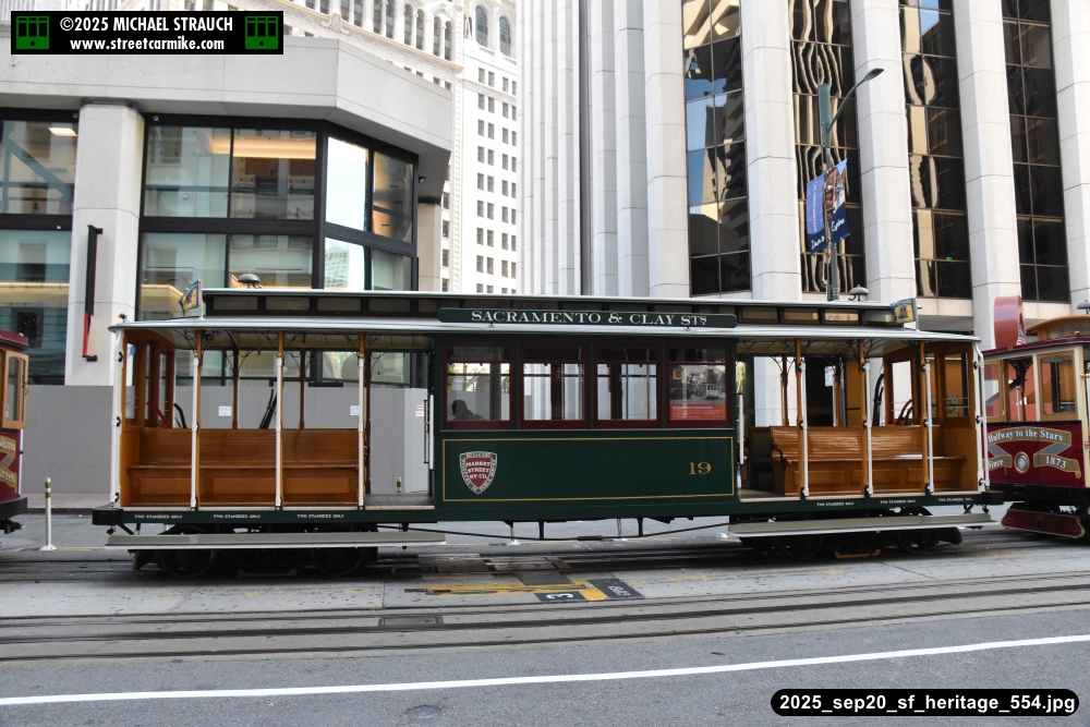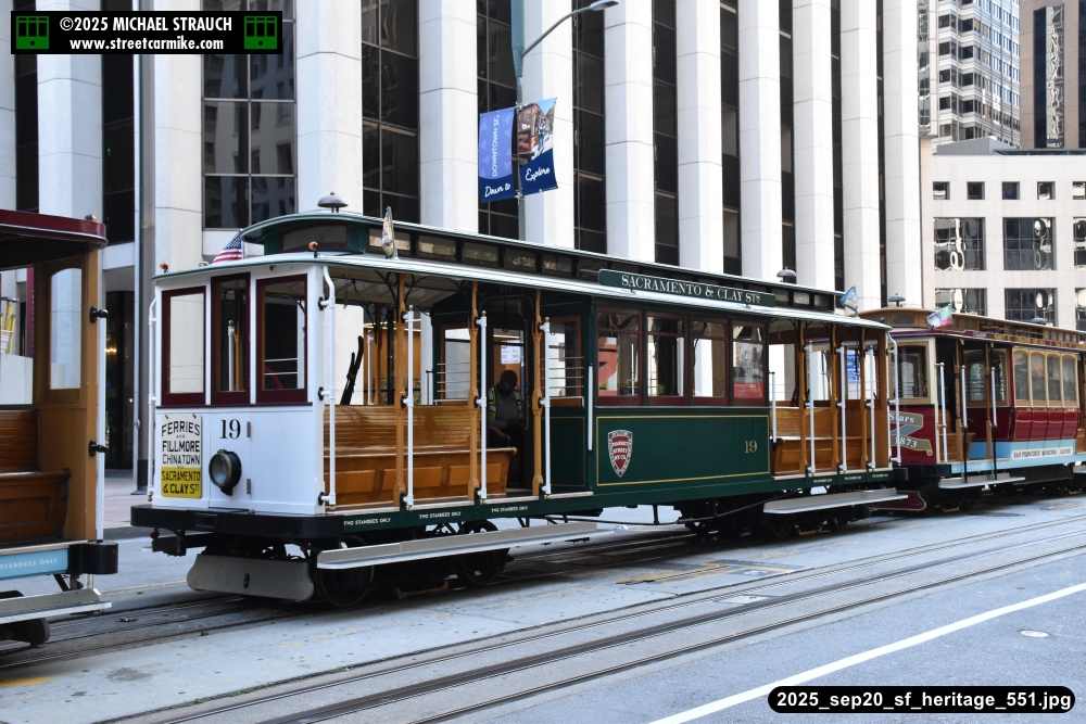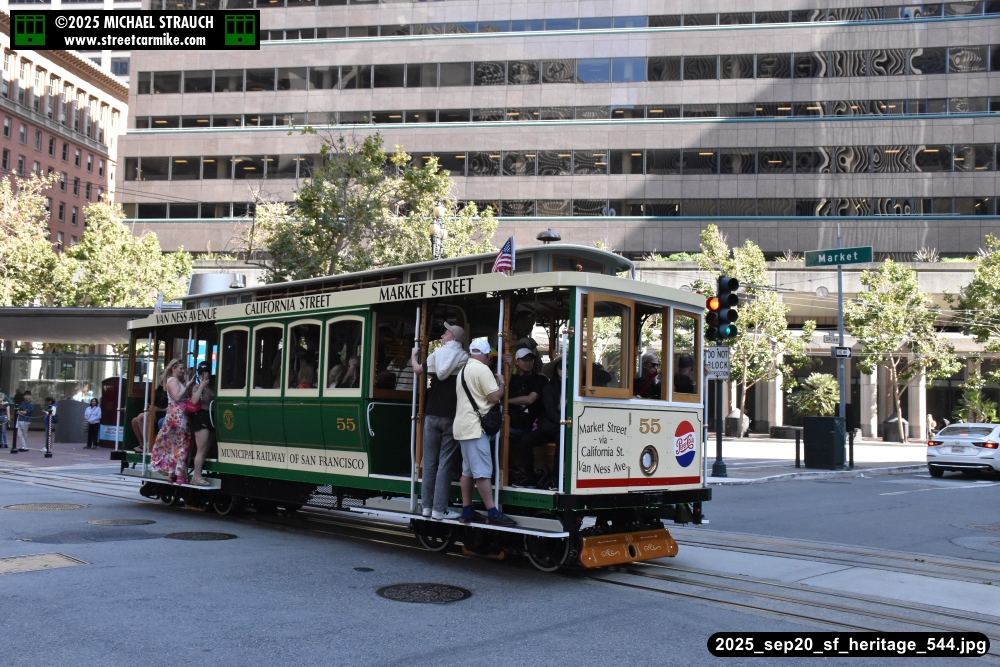 Street, Big 19 and newly restored 55 in Muni 1950s livery were in service.