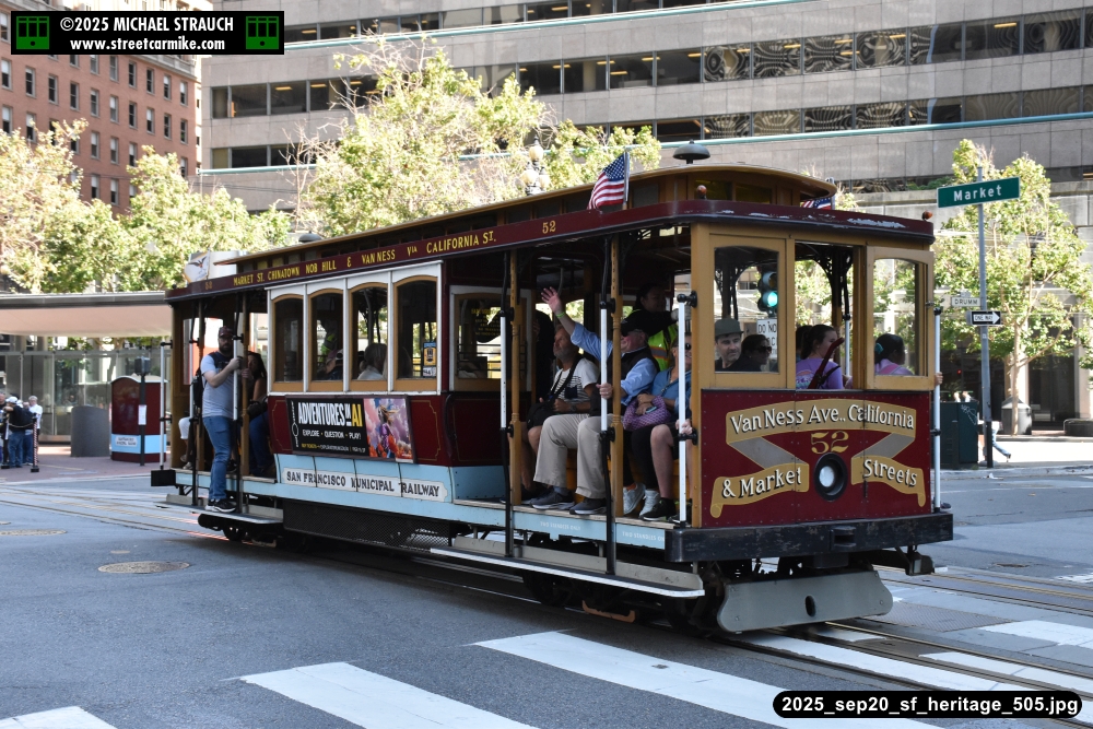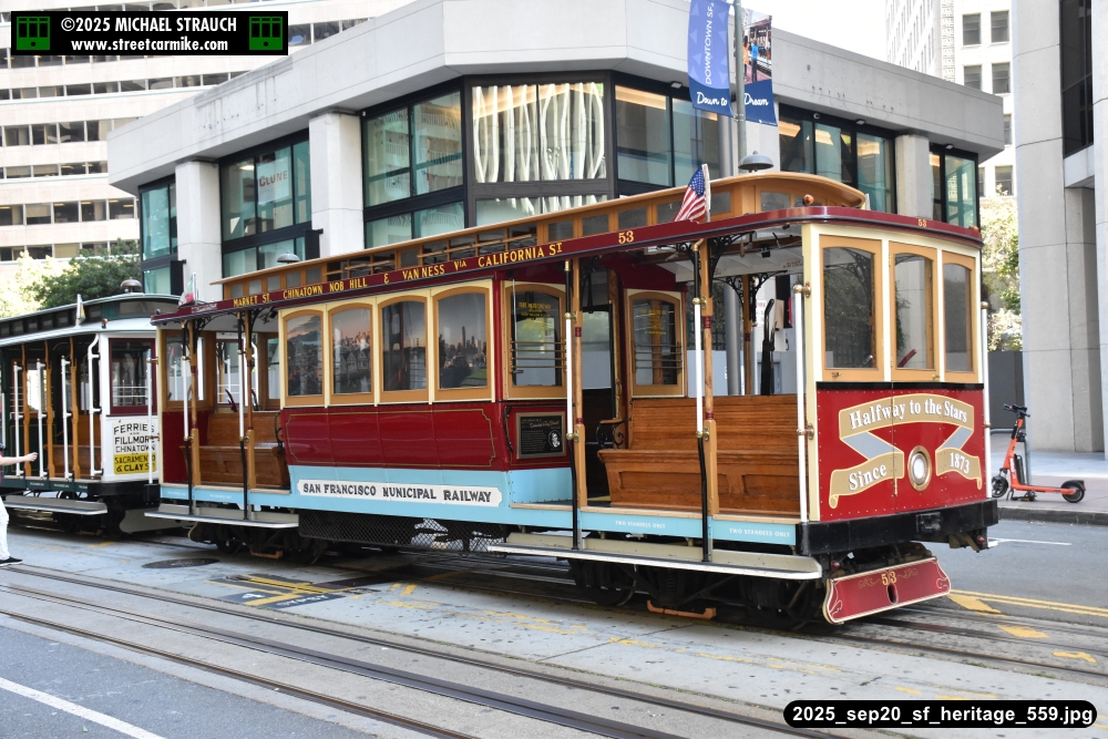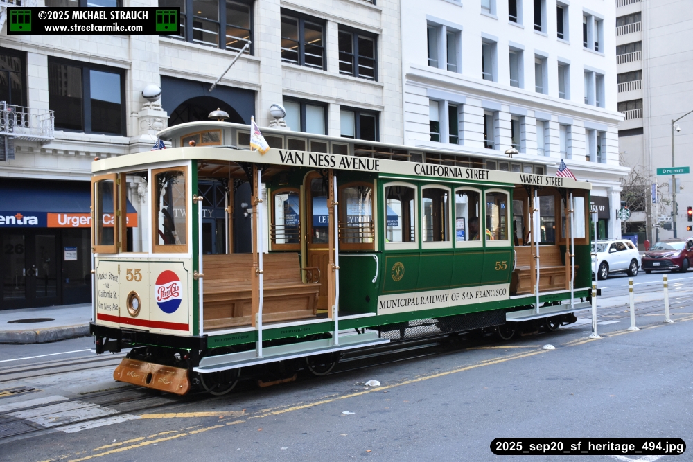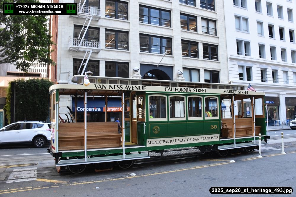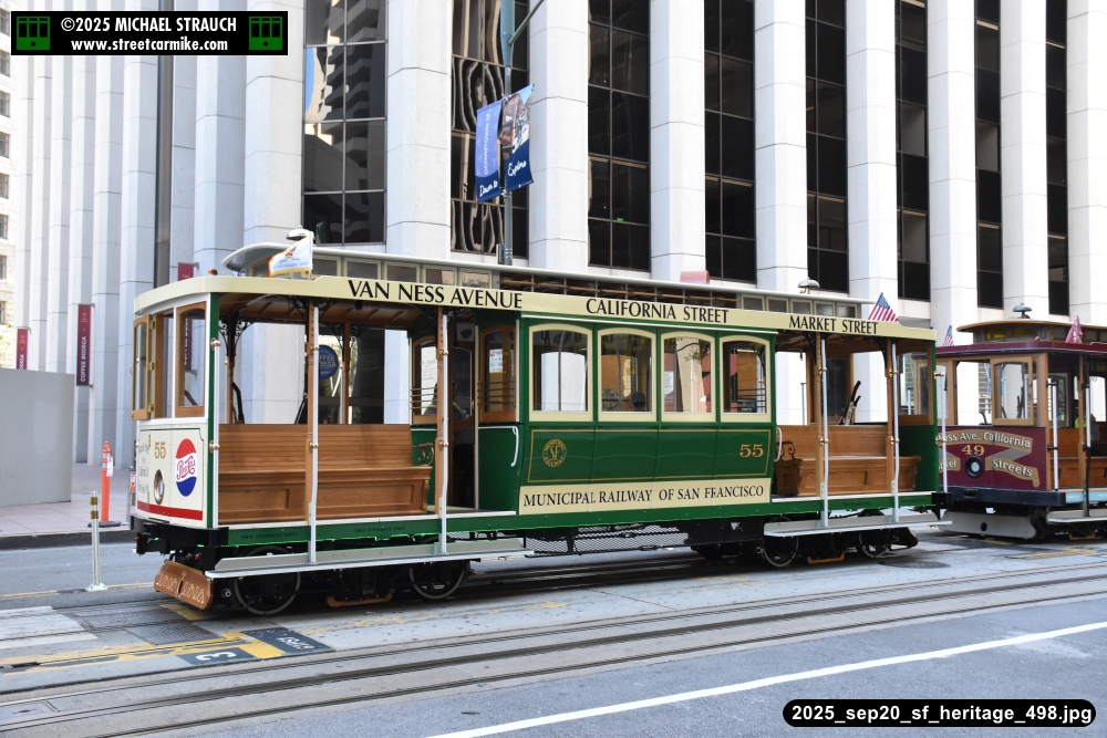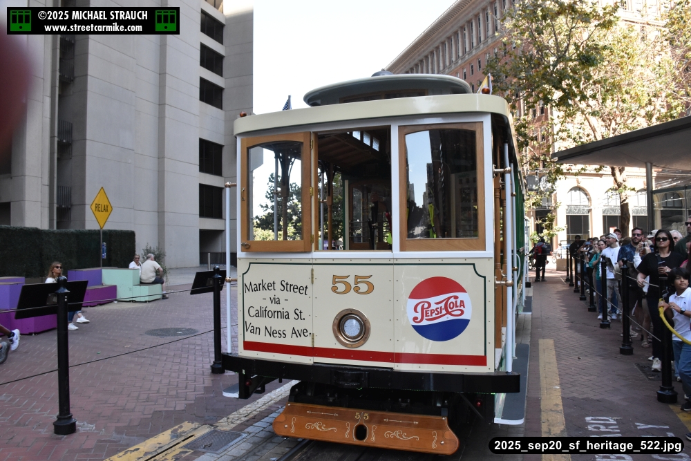 Street, Big 19 and newly restored 55 in Muni 1950s livery were in service.