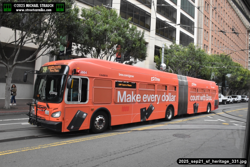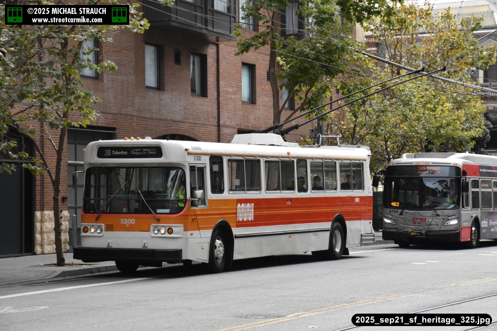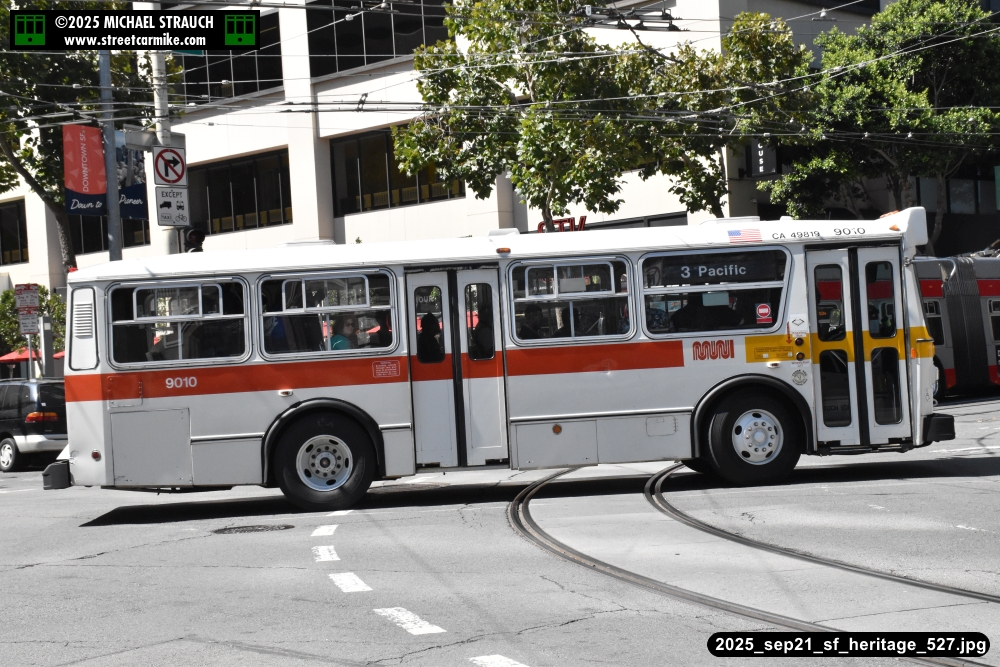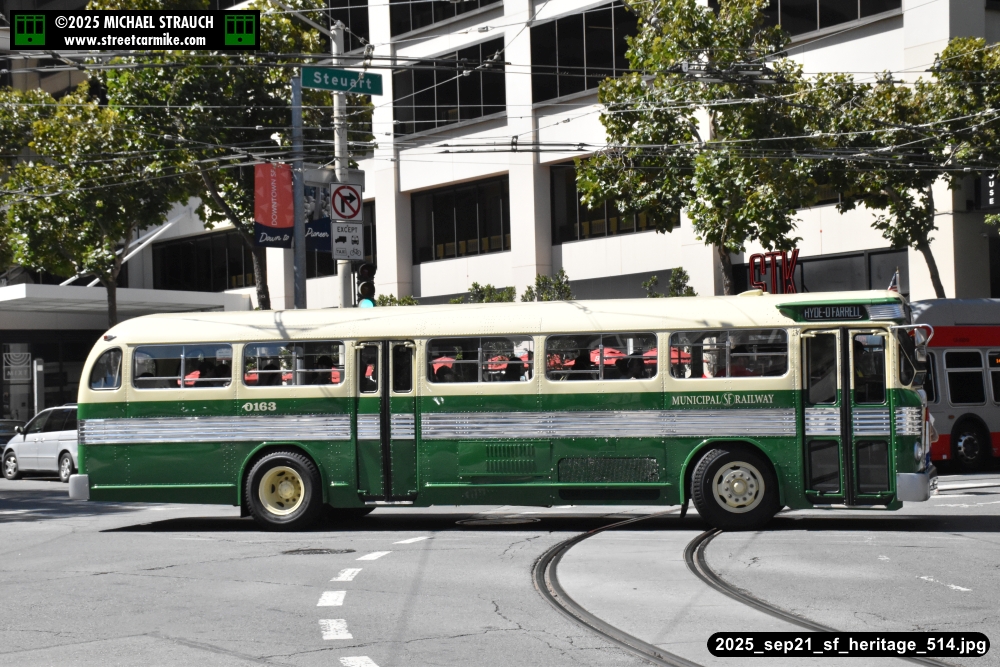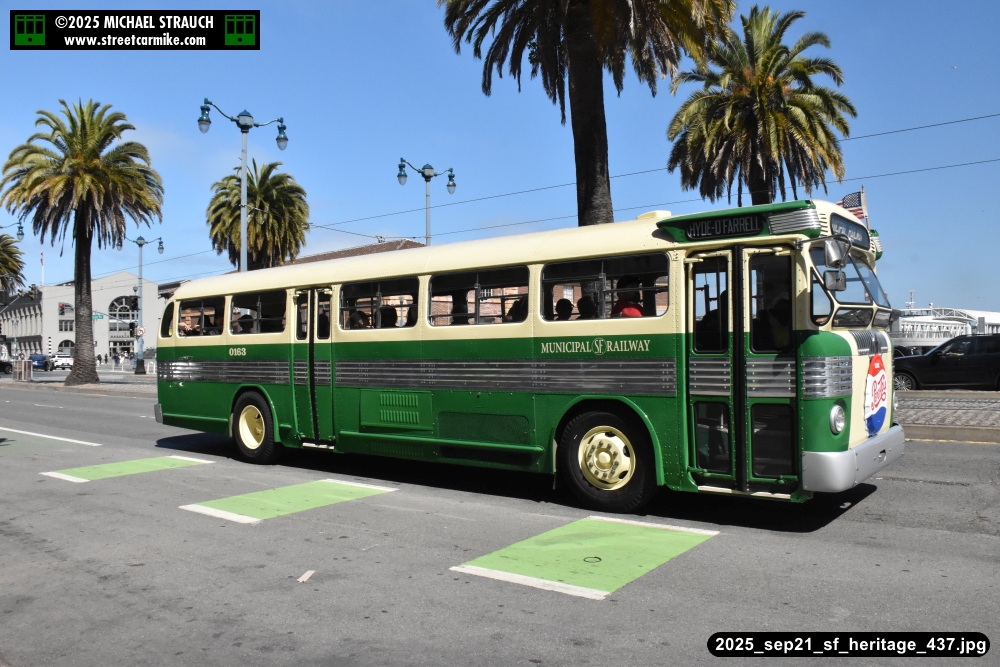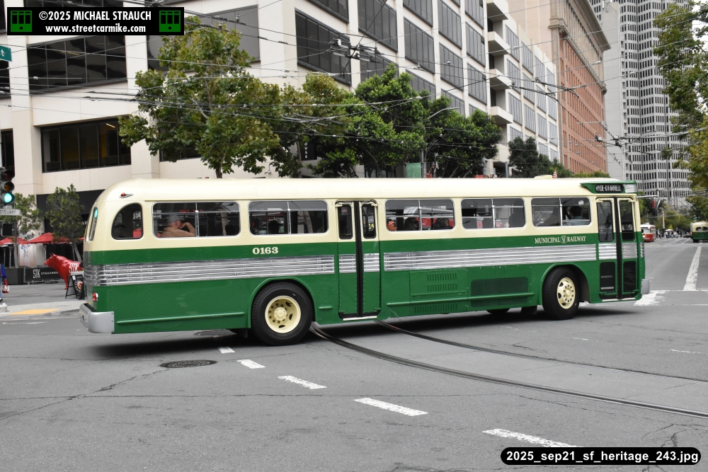 Two rides, on Twin 0163 on the Caltrain route and on Orion 9010 on the Columbus Ave. and North Point