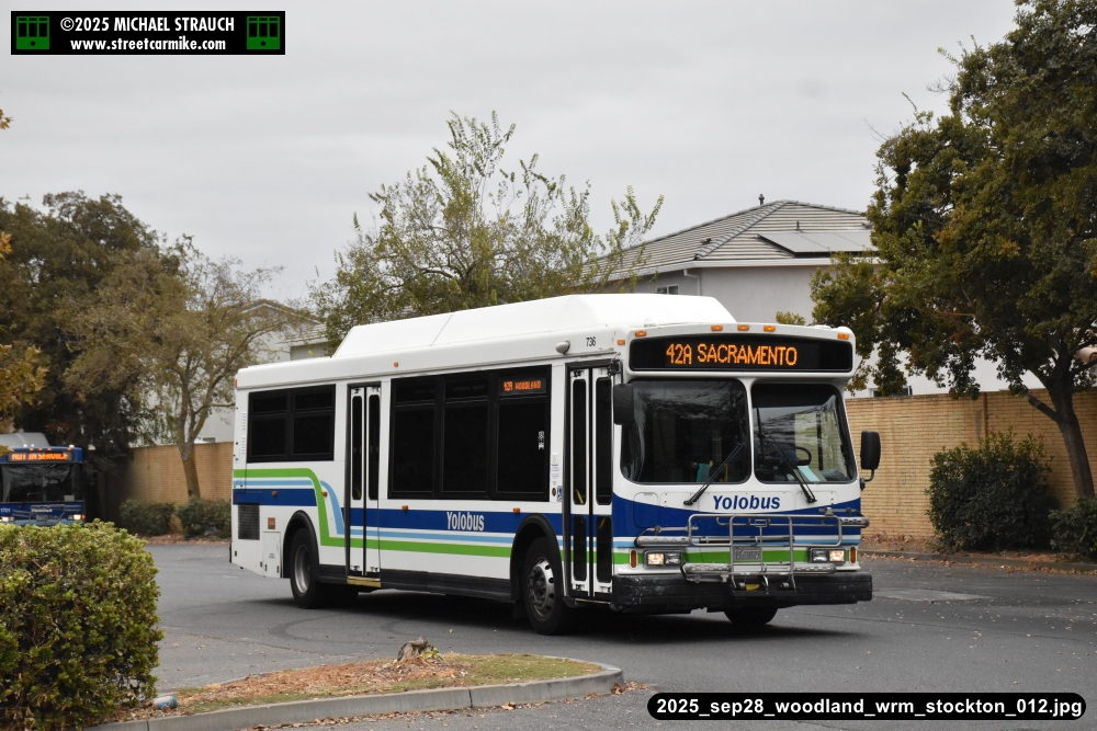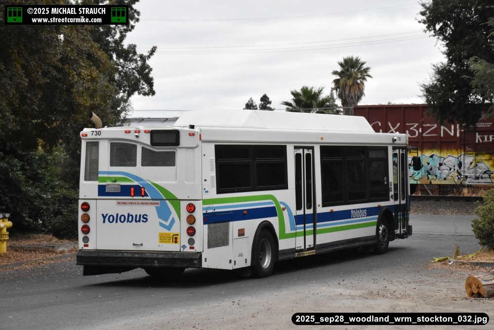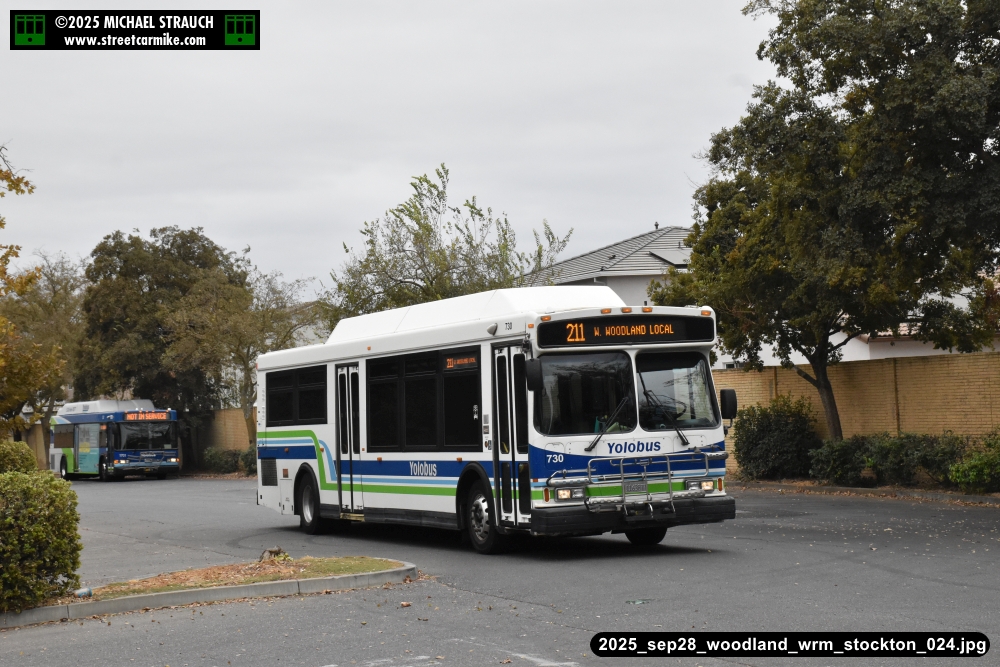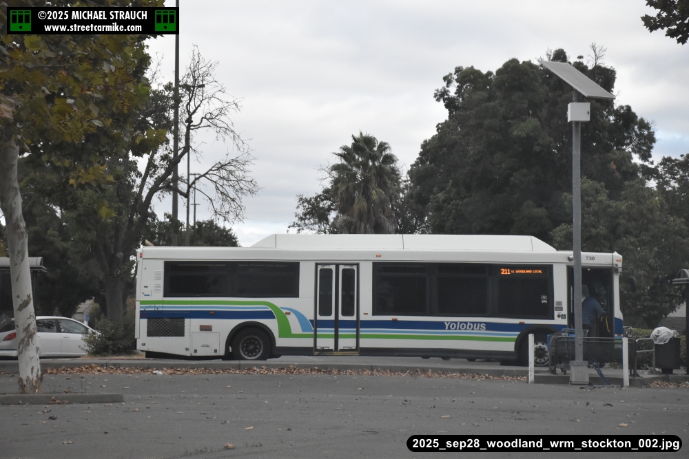 airport to downtown Sacramento. Also at the transit center was Orion 730 on local route 211.