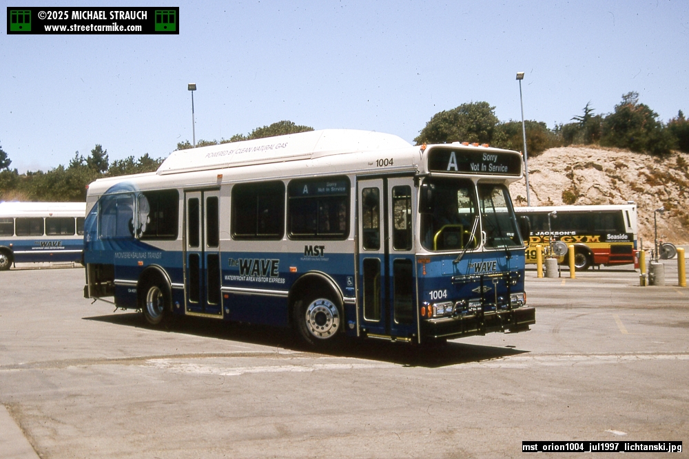 Orion 1006 on The WAVE route A leaves Monterey Transit Plaza on June 24, 1997.
