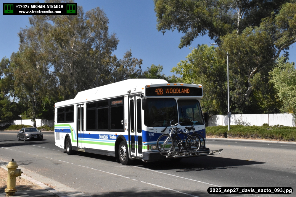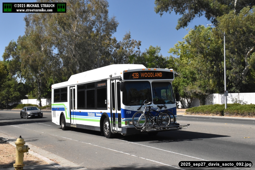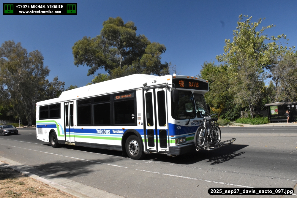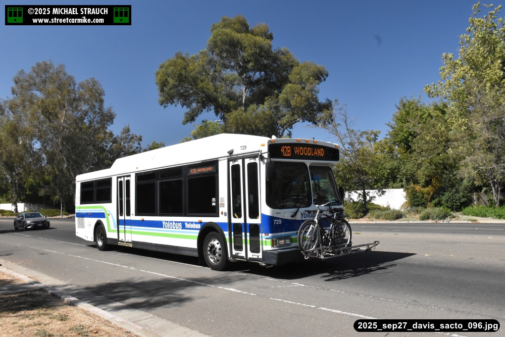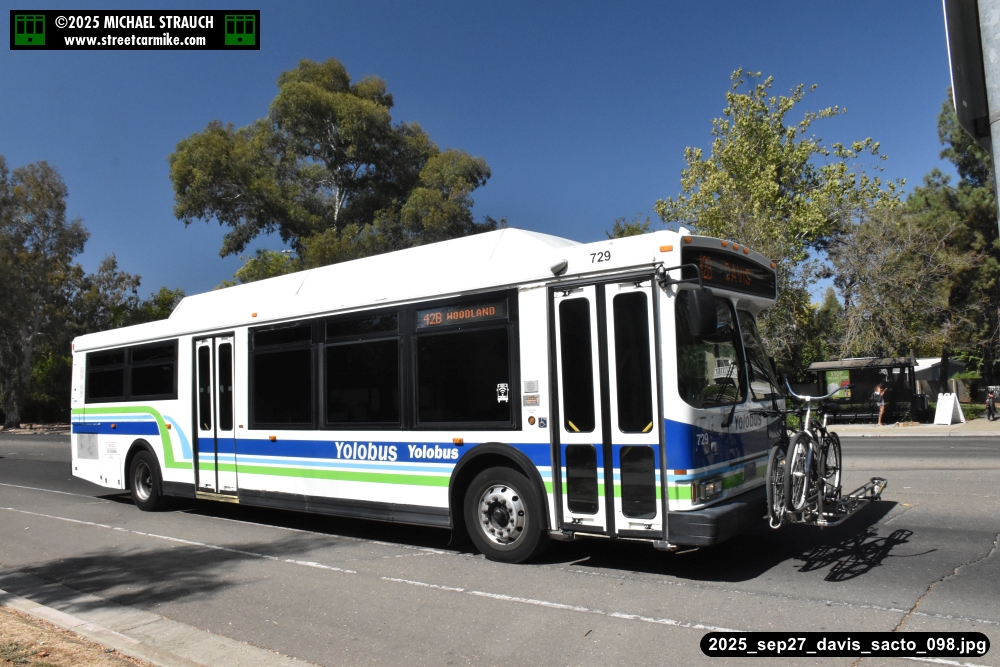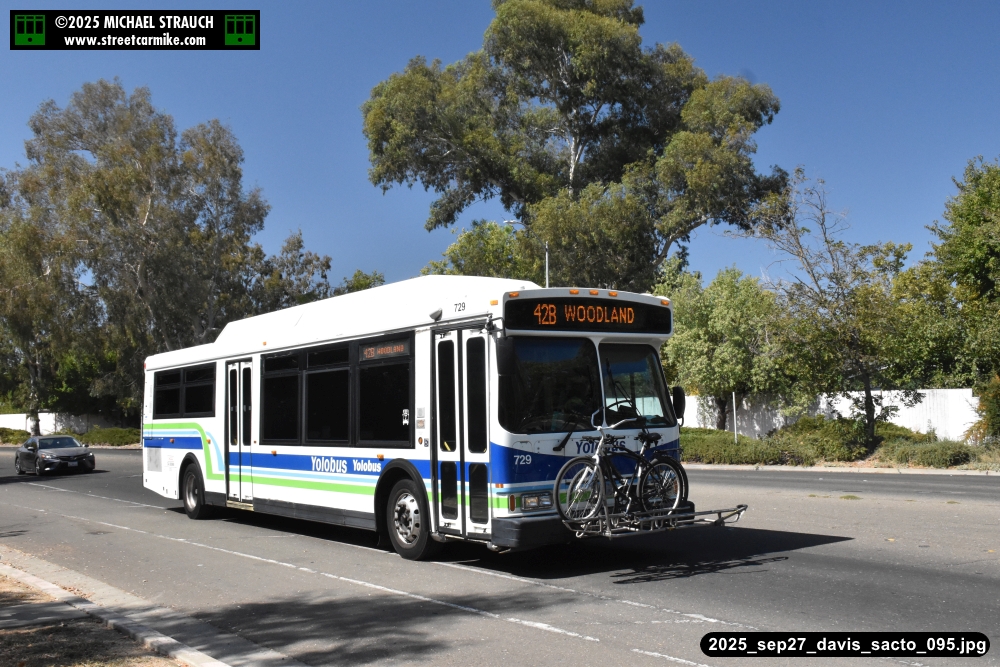 Yolo County Transportation District (Yolobus) bought eight 2003 model Orions numbered 729-736, refurbished 2015-2016, and most are still in service in 2025.
